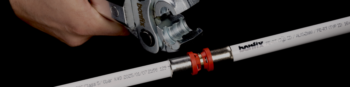 De meerlagenbuis is onderdeel van het hoogwaardige Alu-pers systeem. BONFIX maakt hierbij gebruik van een PE-RT systeembuis samengesteld uit kunststof en aluminium. PE-RT (polyethyleen met verhoogde temperatuurweerstand) is een veelgebruikt materiaal voor verwarmings- en sanitairleidingen vanwege de flexibiliteit en duurzaamheid.